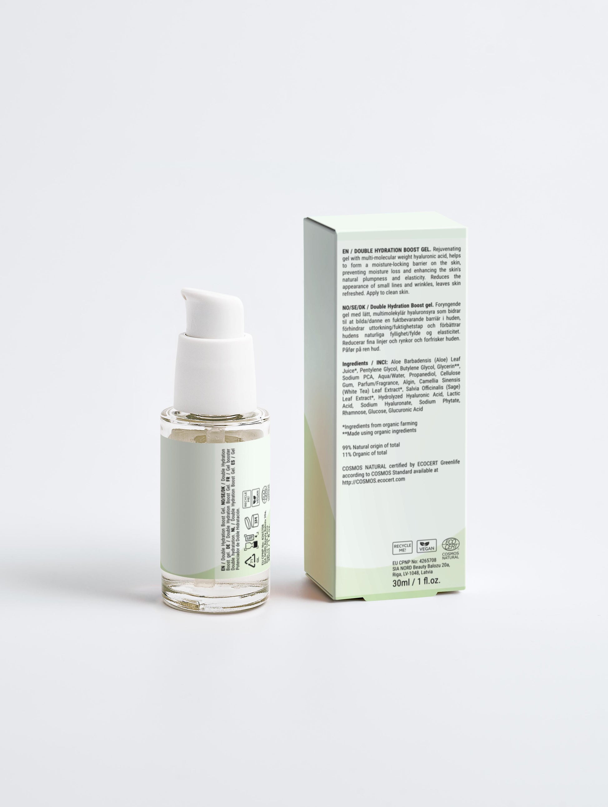Elevate your skincare routine with our Double Hydration Boost Gel — a lightweight, fast-absorbing formula designed to quench thirsty skin and restore its natural glow. Powered by multi-molecular weight hyaluronic acid, this rejuvenating gel forms a moisture-locking barrier to prevent dehydration while promoting visible plumpness and elasticity.